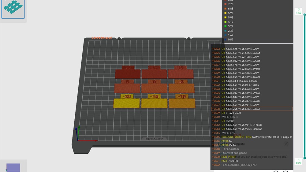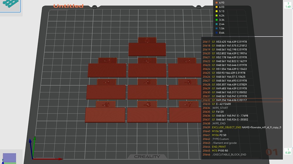 一度、1.045に設定を変更して今度は”Pass 2″を出力。流量の範囲が変わるかんじ。