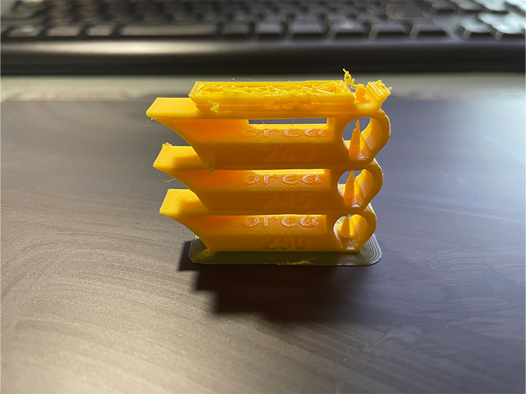 温度タワーは230℃でリタイア。。。やっぱりPETGは250℃がいいみたい。